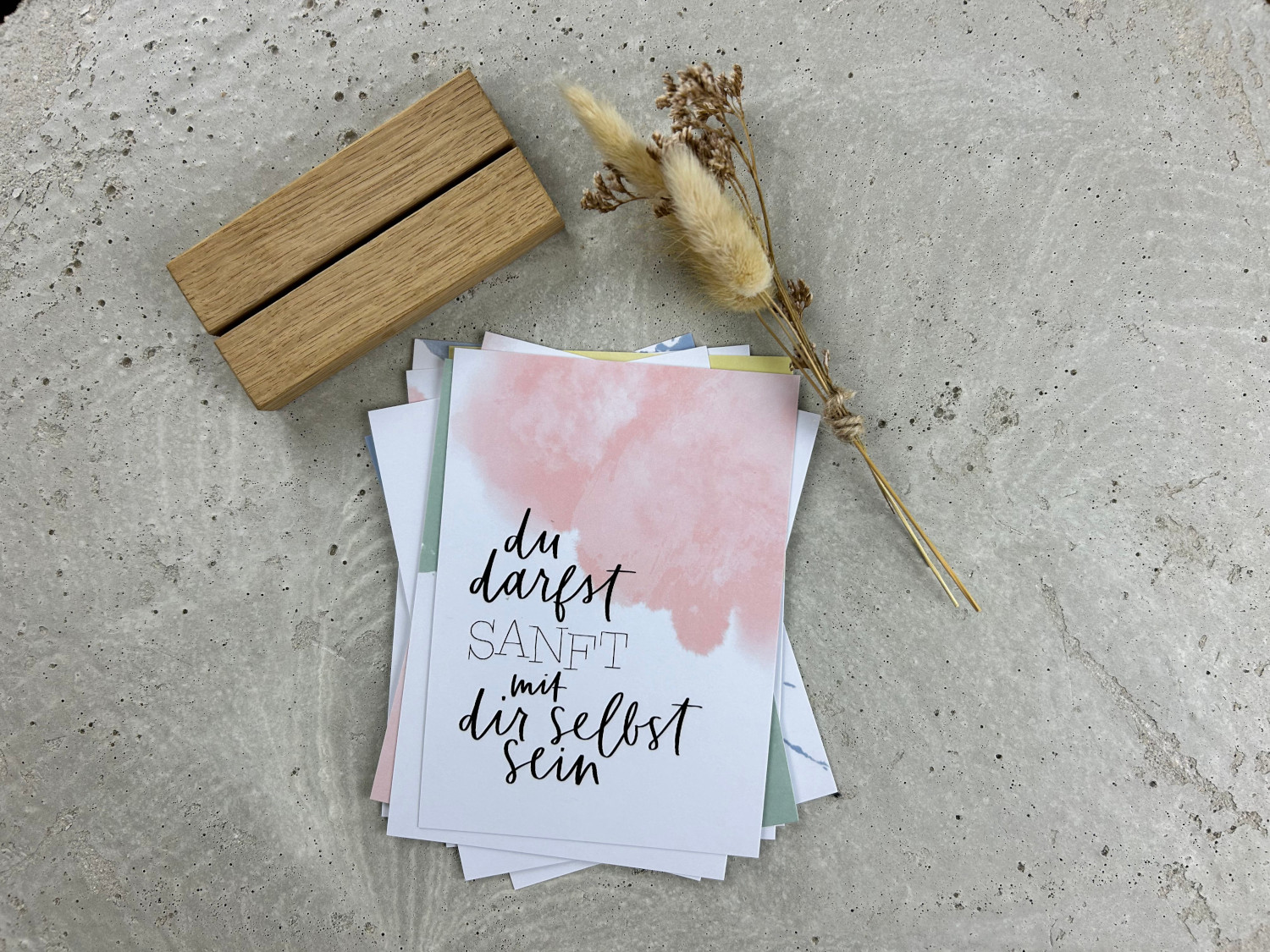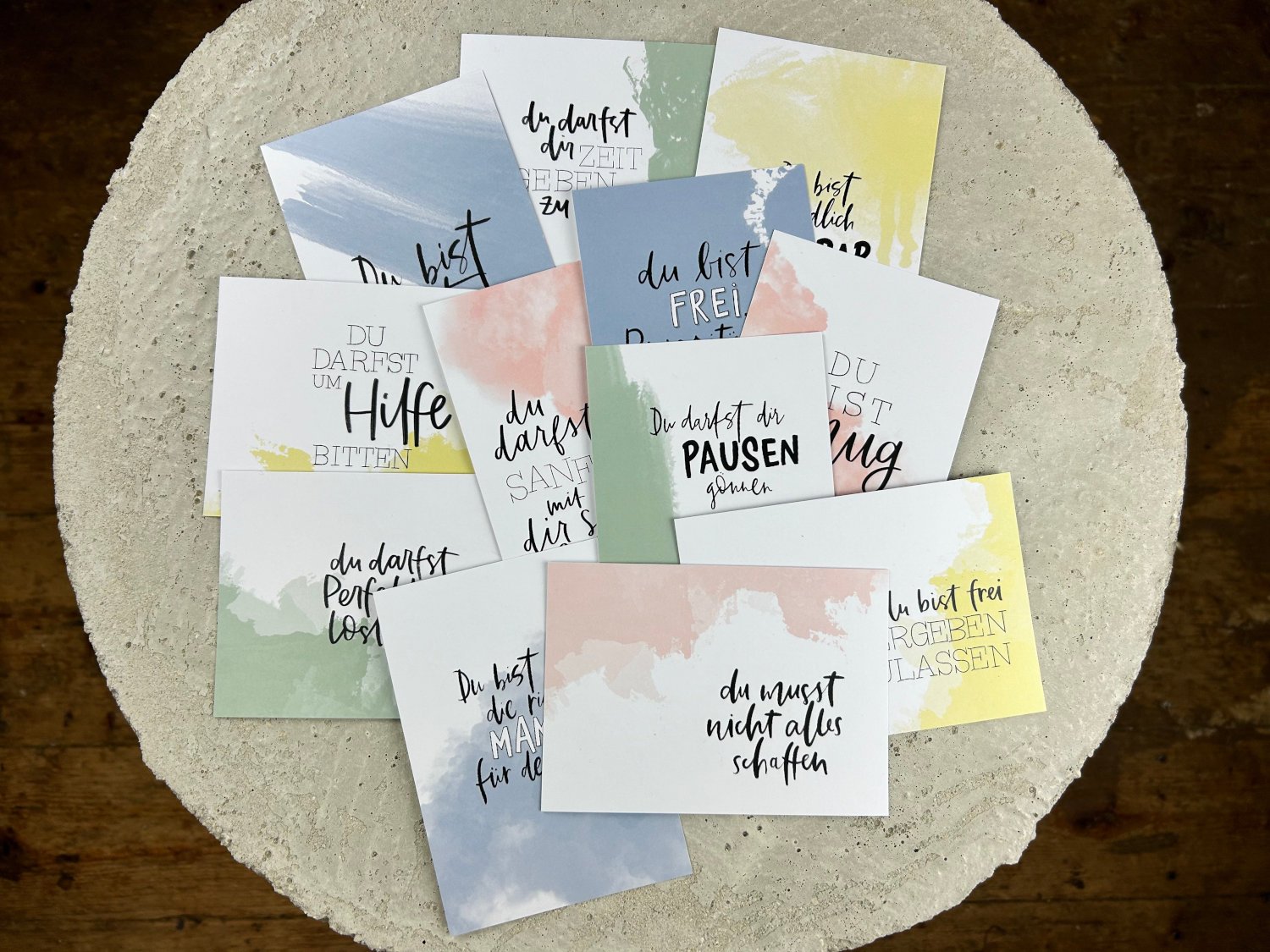 Jede Karte ist einzigartig und trägt einen prägnanten Ermutigungssatz.