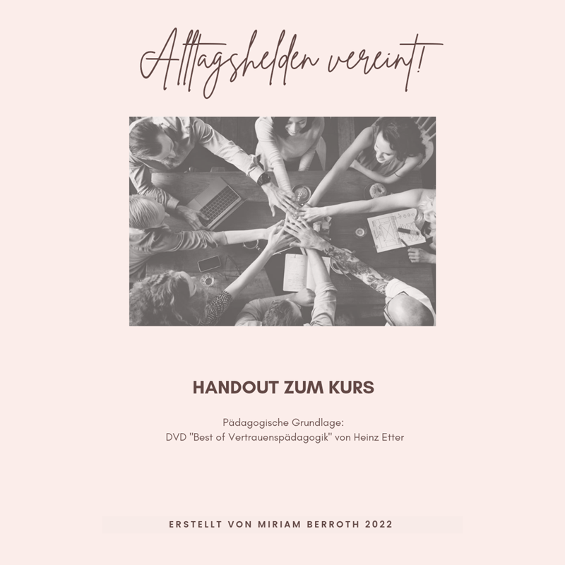 Die pädagogische Grundlage bildet der Inhalt des Videomaterials „Best of Vertrauenspädagogik“ von Heinz Etter, Schweizer Pädagoge und Gründer der Vertrauens-pädagogik. Die einzelnen Lektionen schaust du dir zu Hause zwischen den Livesessions an.